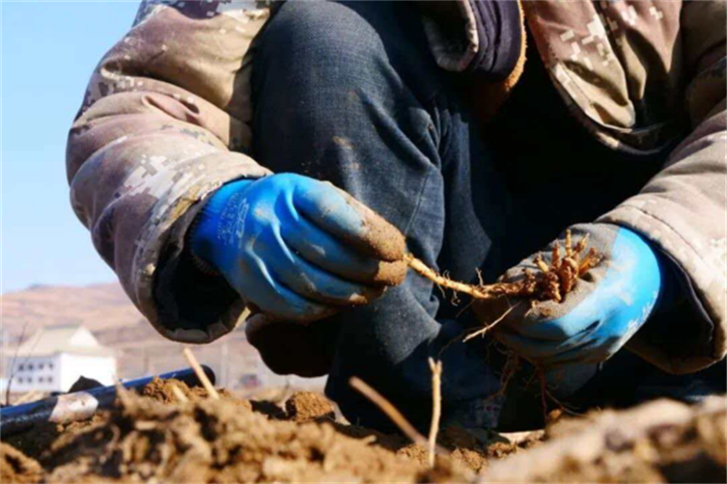 “現(xiàn)在這芽子正合適,長勢壯實,得趕在半月內(nèi)把苗子全刨完。”岷縣梅川鎮(zhèn)西壩村村民呂愛新捏起一株剛挖出的黃芪種苗,手上的活計片刻未停。