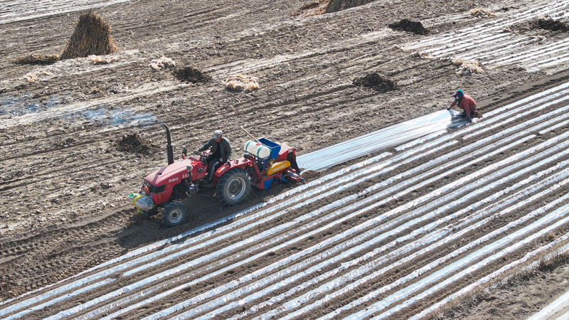 3月5日,在通渭縣什川鎮(zhèn)吳灣村,隨處可見農(nóng)戶整地施肥、機械覆膜的忙碌身影。 新甘肅·甘肅經(jīng)濟日報通訊員 陳佰萬 攝