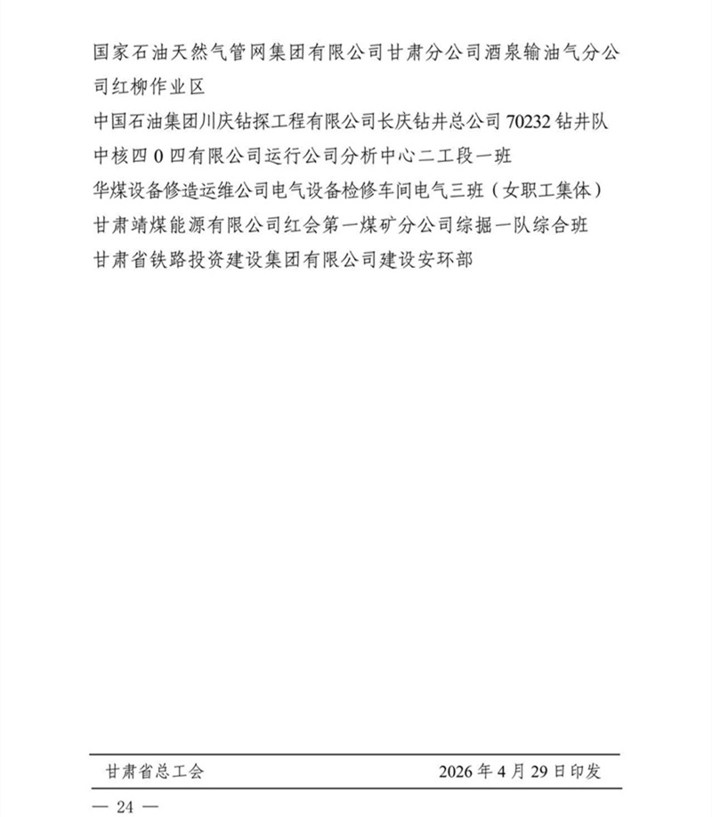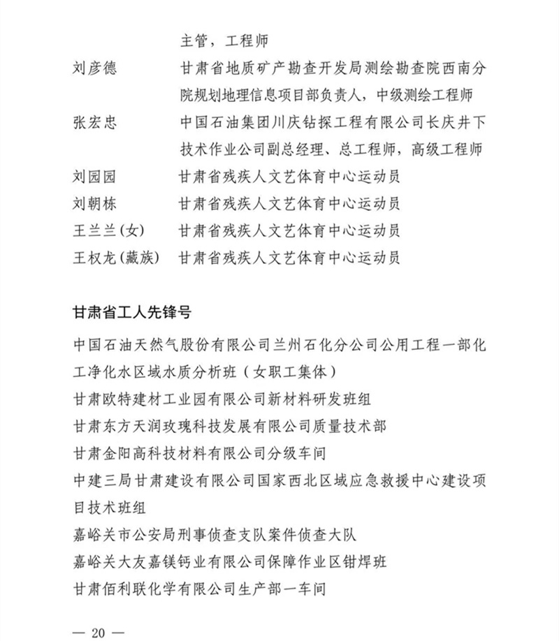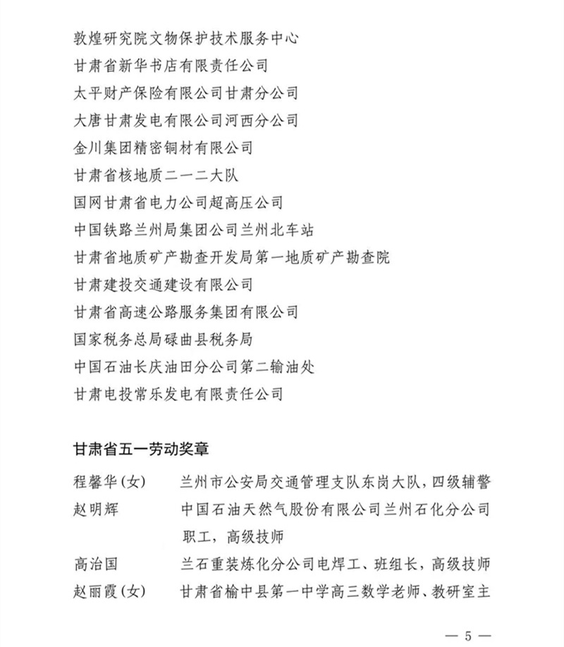 為弘揚勞模精神、勞動精神和工匠精神,發(fā)揮先進示范作用,激發(fā)職工奮進力量,甘肅省總工會在此次大會上作出表彰決定:授予嘉峪關大友企業(yè)集團有限責任公司等30個單位甘肅省五一勞動獎狀,授予程馨華等234名個人甘肅省五一勞動獎章,授予中國石油天然氣股份有限公司蘭州石化分公司公用工程一部化工凈化水區(qū)域水質分析班等70個集體甘肅省工人先鋒號稱號;同步為受表彰的先進女職工個人和集體授予甘肅省五一巾幗獎相關榮譽,肯定女職工突出貢獻,傳遞關懷與激勵。
